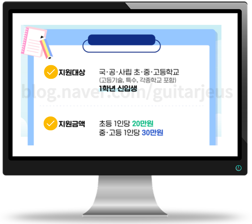 초등학생에게는 1인당 20만 원, 중고등학생에게는 1인당 30만 원을 지원합니다.